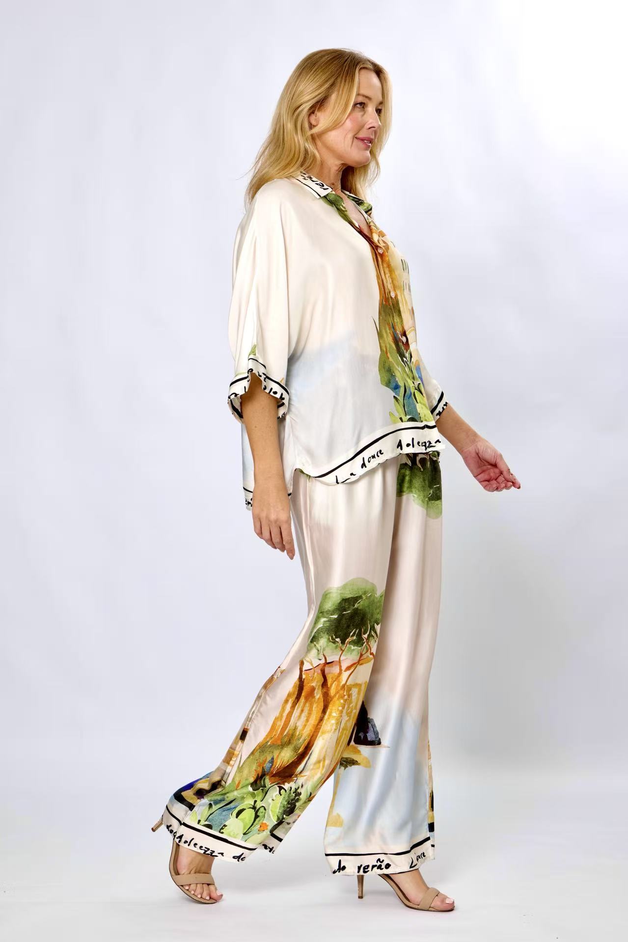 The La Strada Positano Shirt Cream is the ultimate in chic European sophistication. Crafted from 100% soft viscose giving you an all day cool and breezy feel, this stunning shirt features a water colour vista of the stunning coast line of Positano. Cut as a casual oversized shape, it features a button down placket and is finished with cursive hand writing boarder print. This gorgeous shirt is an absolute winner.