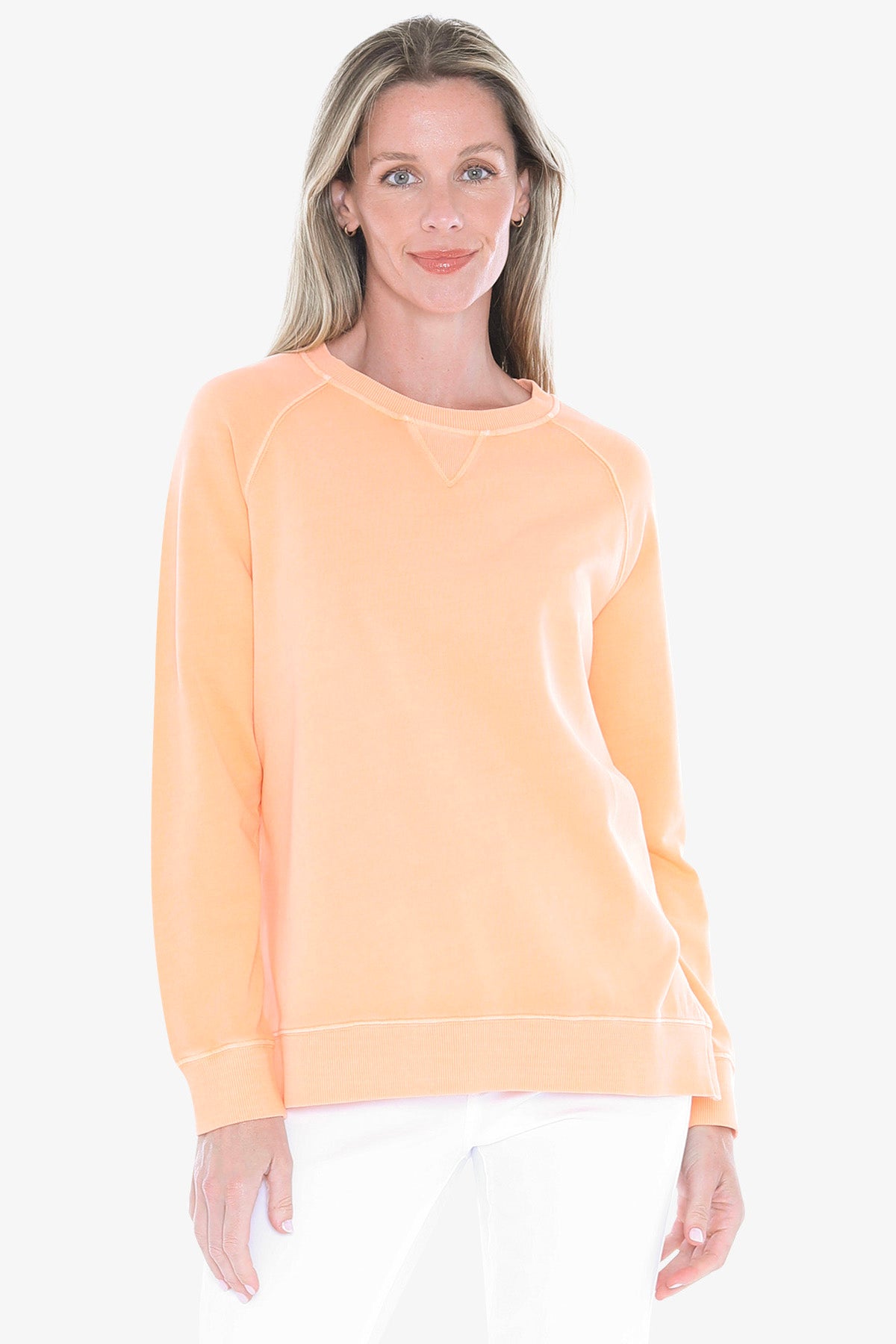 Welcome to Jump’s Pigment Sweat Top, a plain, classic sweater you will wear and wear. This garment features long sleeves and a round neckline with v stitching detail, side splits, and a ribbed hem and cuffs. Made from Jump’s quality cotton french terry, this sweater is durable and comfortable.