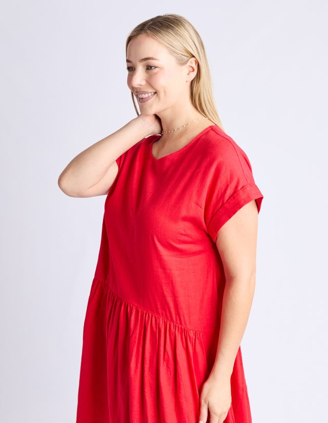 Our Sunset Hour Dress is oh so Elm. Bold and colourful unique print featuring on one of our best selling shapes in a knee length design, The Sunset Hour Dress invites you to play in the sun.