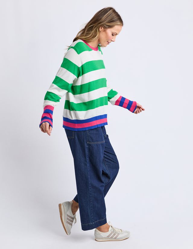 Reggie Long Sleeve Knit - Green/White Stripe